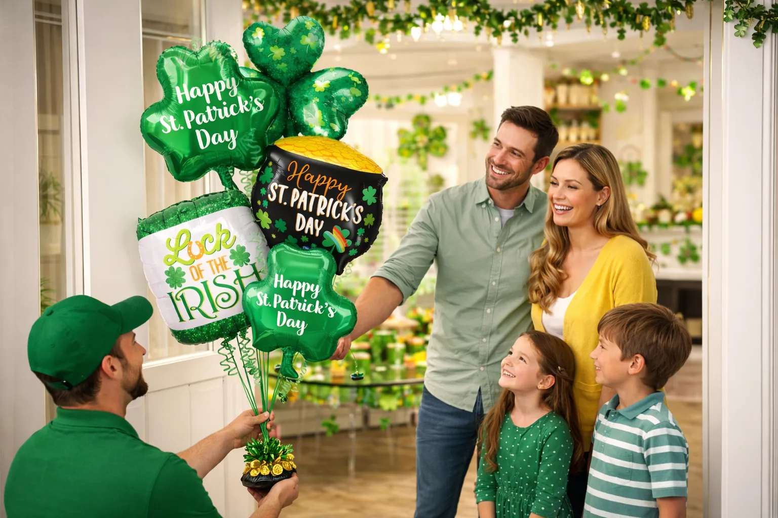Bring home the luck of the Irish with festive green and gold balloons perfect for celebrating St. Patrick’s Day.